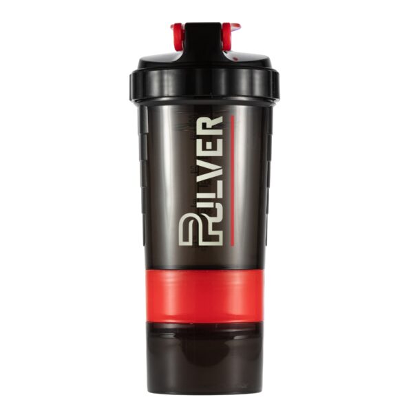 Pulver® – Luxe Shake beker rood – 2 compartimenten – 0,75L – Sportschool shakebeker – Fitness drinkfles – Extra vakjes – Shaker