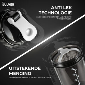 Pulver®- Premium RVS Shakebeker - Proteïne en Eiwit Shaker - Shake beker - BPA Vrij - 1000 ml - Shaker - Drinkfles 1 liter - Zwart