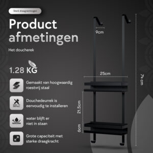 Zet de badkamer artikelen gemakkelijk op het doucherekje, hierdoor kan jij er altijd makkelijk bij. Het doucherek komt met 4 haken, hier kan je bijvoorbeeld een scheermesje, washand of wat anders aan ophangen.
